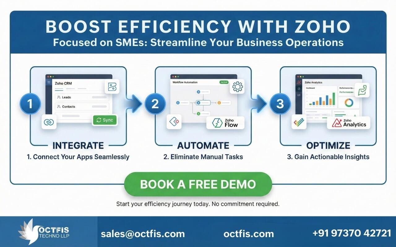 Book a FREE Zoho demo with Octfis Techno LLP today. No commitment required.